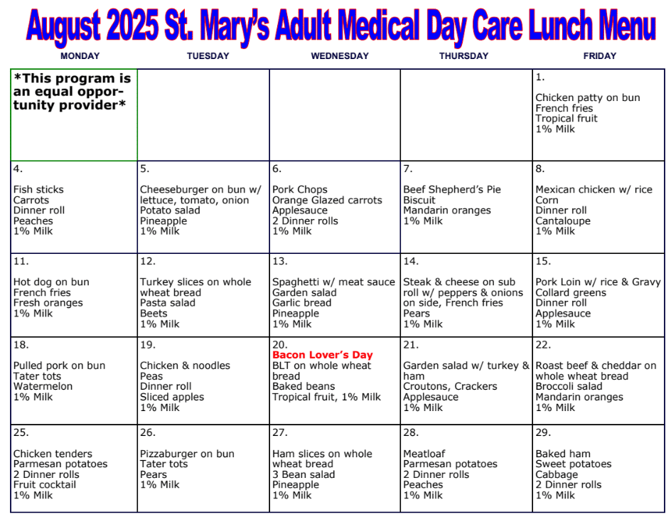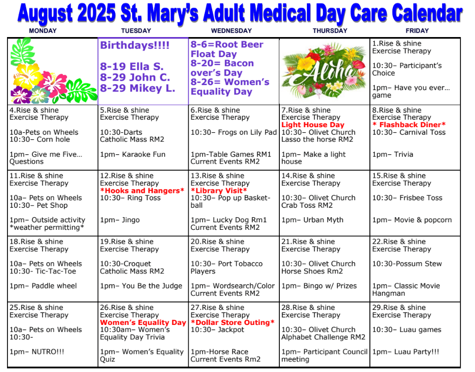 St. Mary’s Adult Medical Day Care is a 501(c)(3) non-profit organization.