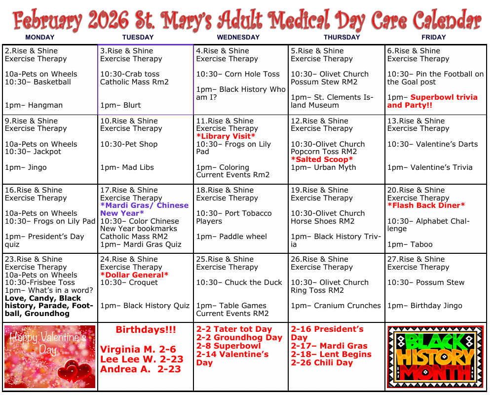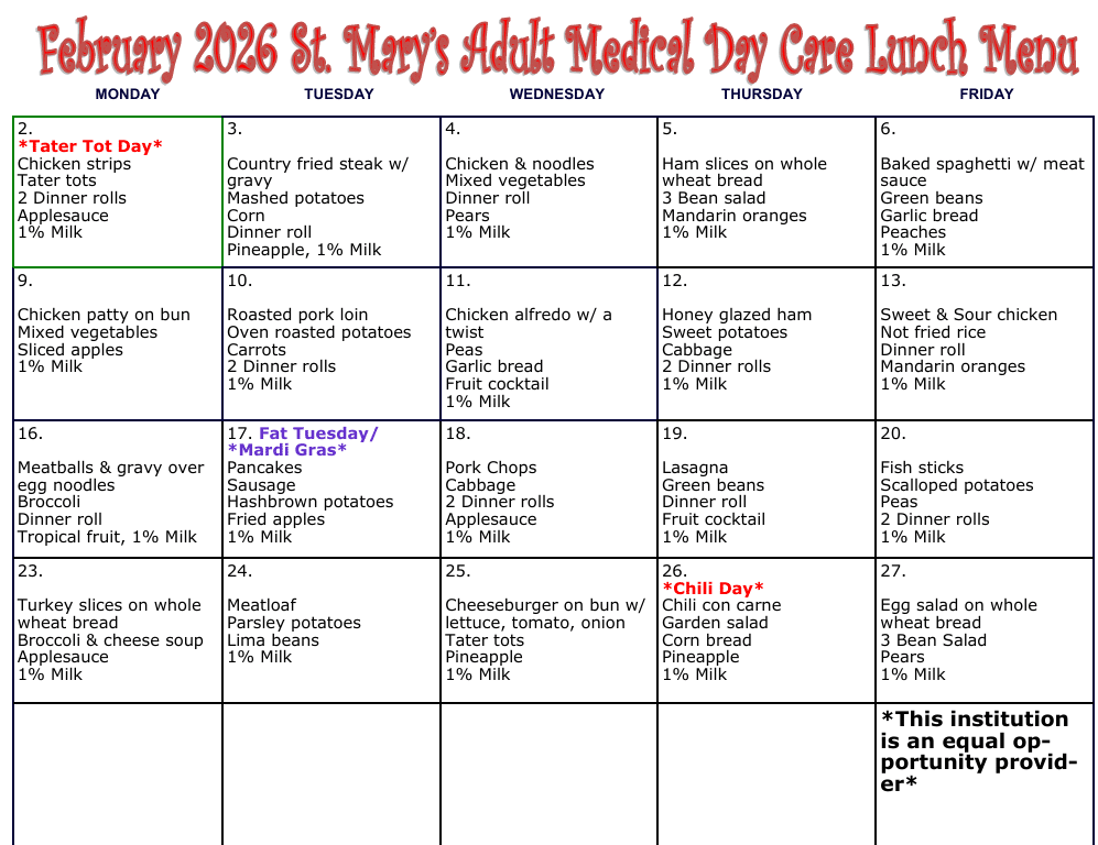 St. Mary’s Adult Medical Day Care is a 501(c)(3) non-profit organization.