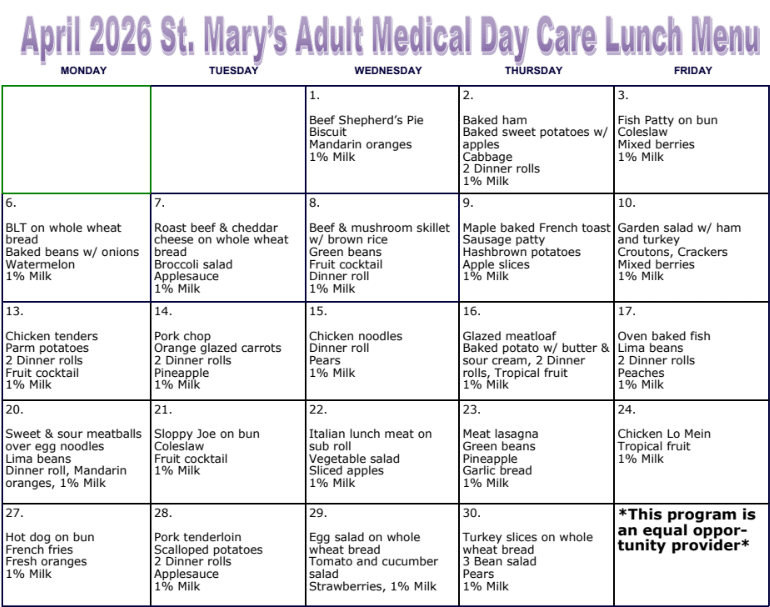 St. Mary’s Adult Medical Day Care is a 501(c)(3) non-profit organization.